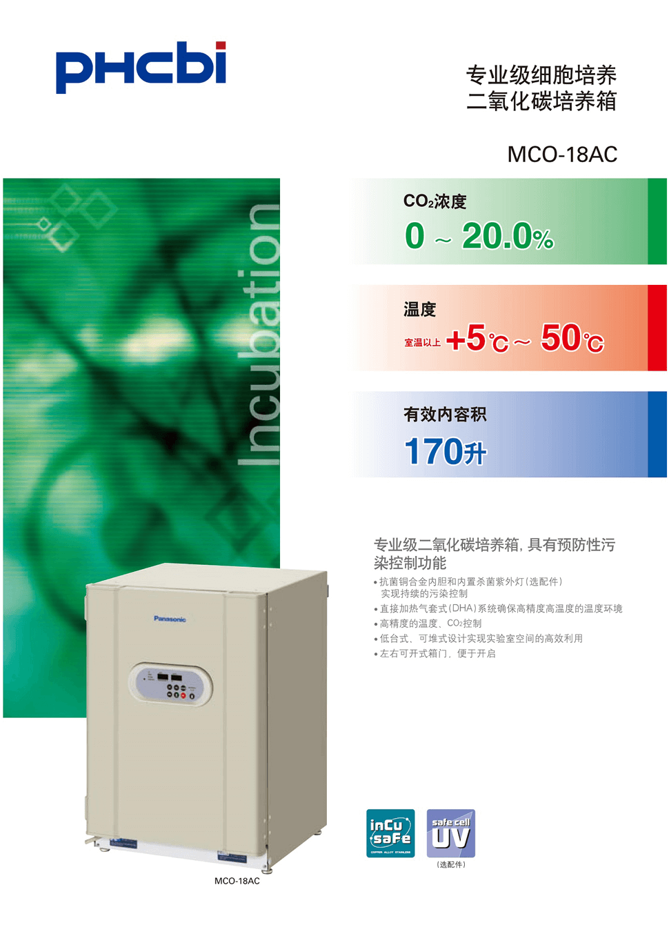 日本PHCbi(原日本SANYO、日本Panasonic)MCO-18AC型二氧化碳培养箱,广泛应用于医学、免疫学、遗传学、微生物、农业科学、药物学的研究和生产,是上述实验室不可缺少的实验设备。